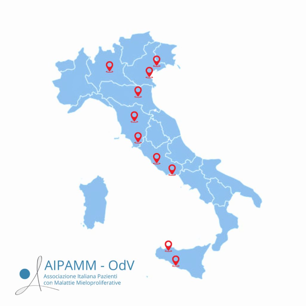 Obiettivi dell’AIPAMM: informare i pazienti affetti da mielofibrosi e le famiglie dei pazienti dei progressi nella terapia e nella diagnosi della malattia. Aiutare i pazienti nella loro vita con la malattia. Promuovere progetti di studio nel campo della diagnosi e della cura della mielofibrosi. Supportare la formazione di giovani ricercatori operanti nel campo della mielofibrosi.